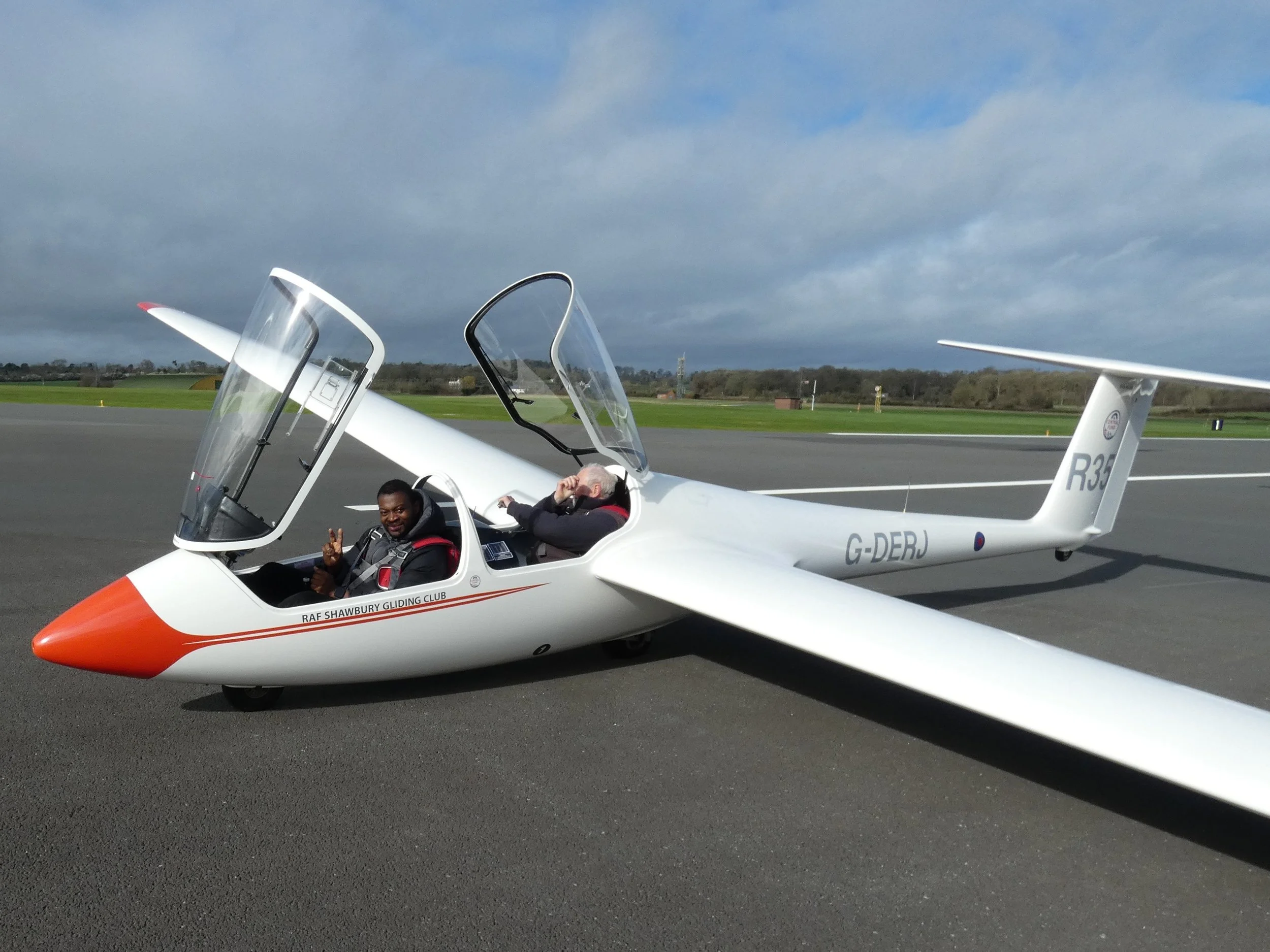 Two of our MEF gliding bursary students braved the elements to join us today. In really testing conditions Elijah continued his flying with Simon and completed a very creditable first landing. Top job Elijah.
