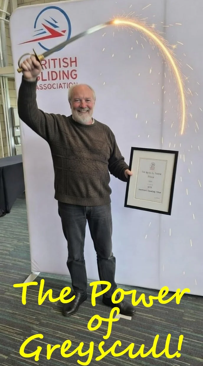 It was the BGA Sporting Conference and Exhibition 2026 yesterday and it’s congrats to Simon Adlard on his joint award of The Saundby Sword Safety Award 2026 that is awarded in recognition of a gliding club or group contribution to flight safety. We get giving him another framed award to put up on the wall of his downstairs bog but it is far too dangerous to let the old lad loose with sword – he has no idea where to put that!