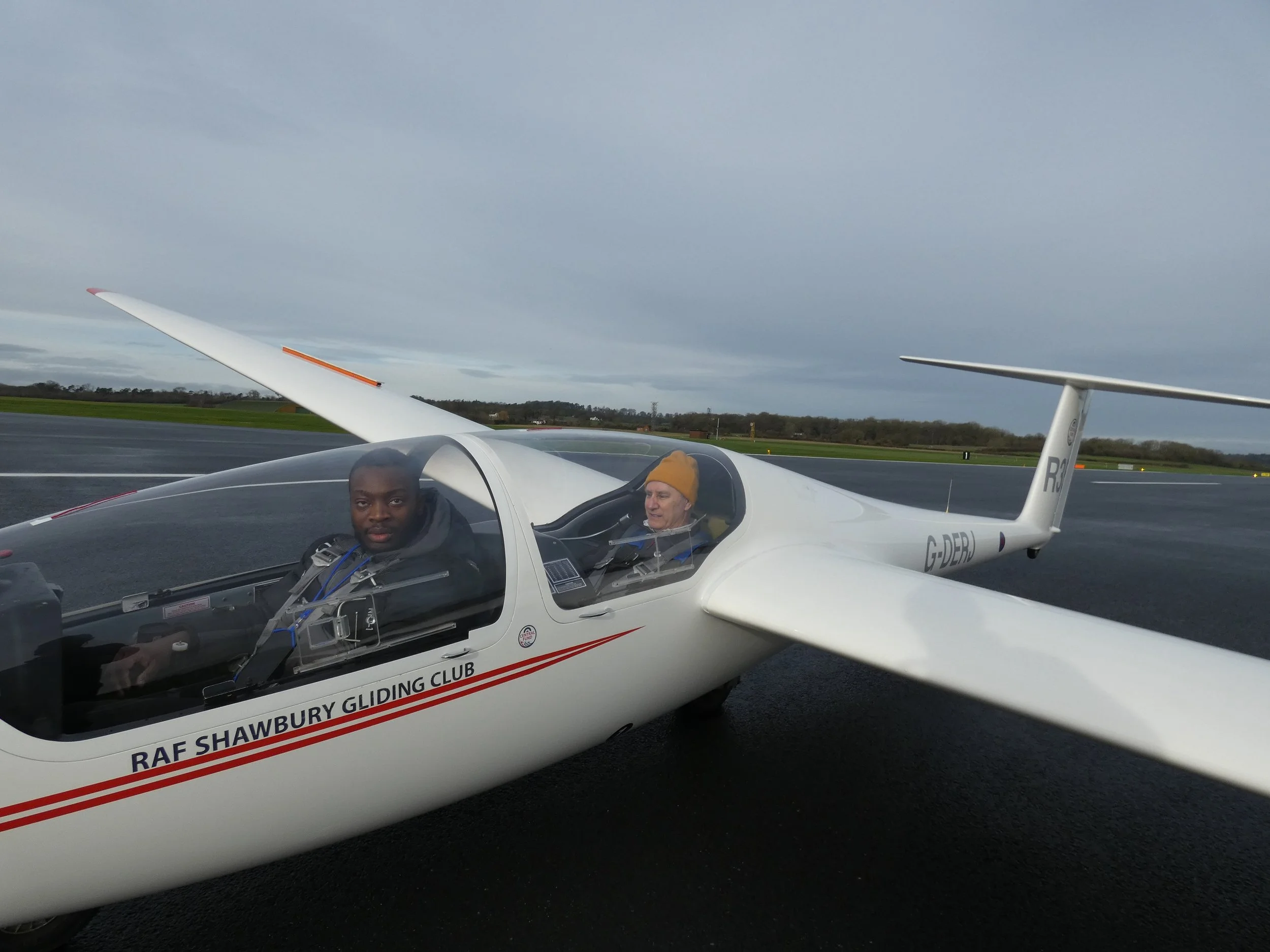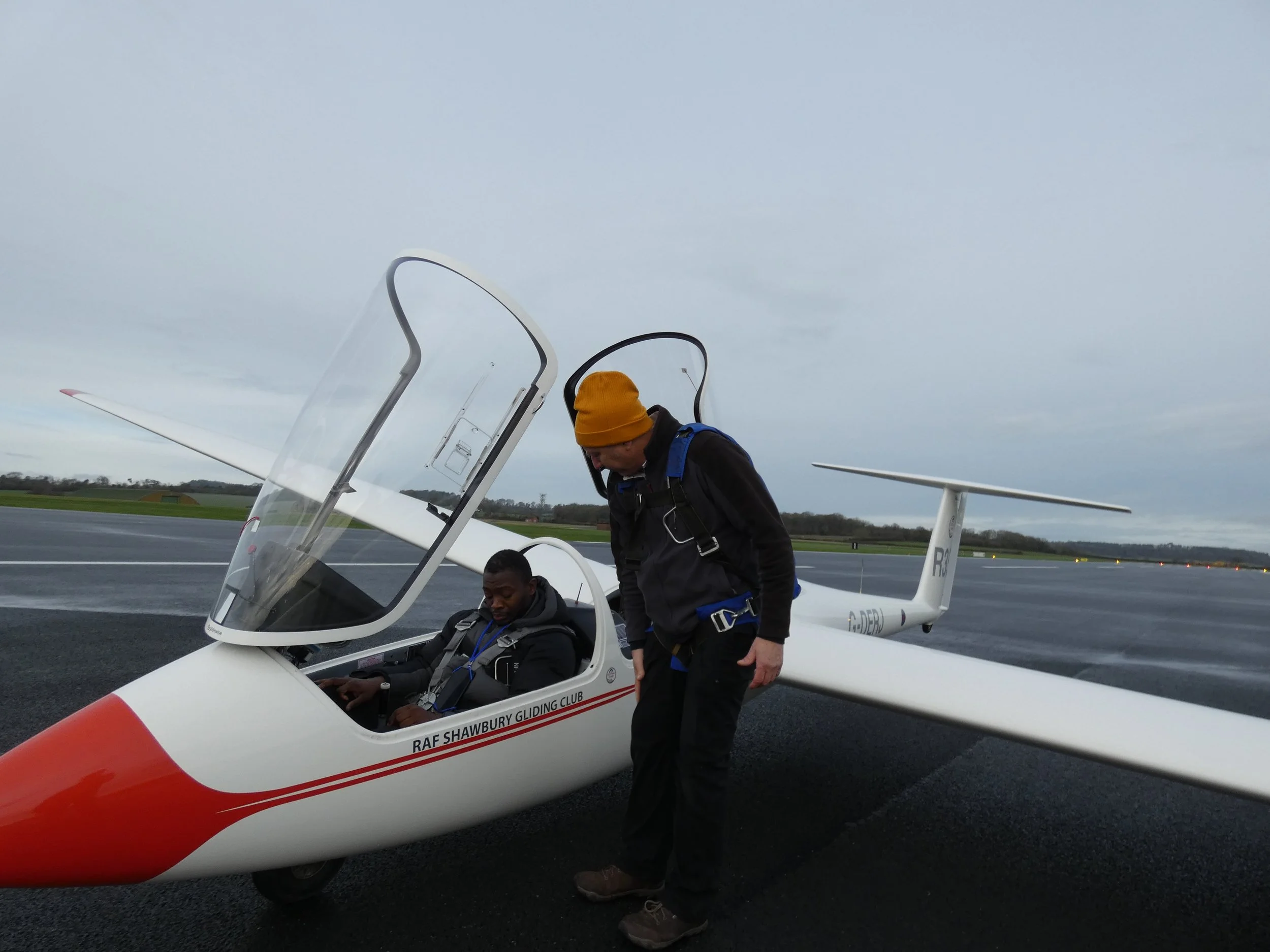 A warm welcome to new MEF gliding bursary student Elijah. Elijah had some prior fixed wing flying experience, so it came as a complete surprise when Nick explained that the footrests were actually rudder pedals!