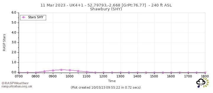 The Star Rating provides an indication of the quality of the soaring on the day. Anything over 0 is thermally active, and 3 Stars and above suggests good conditions for local soaring.