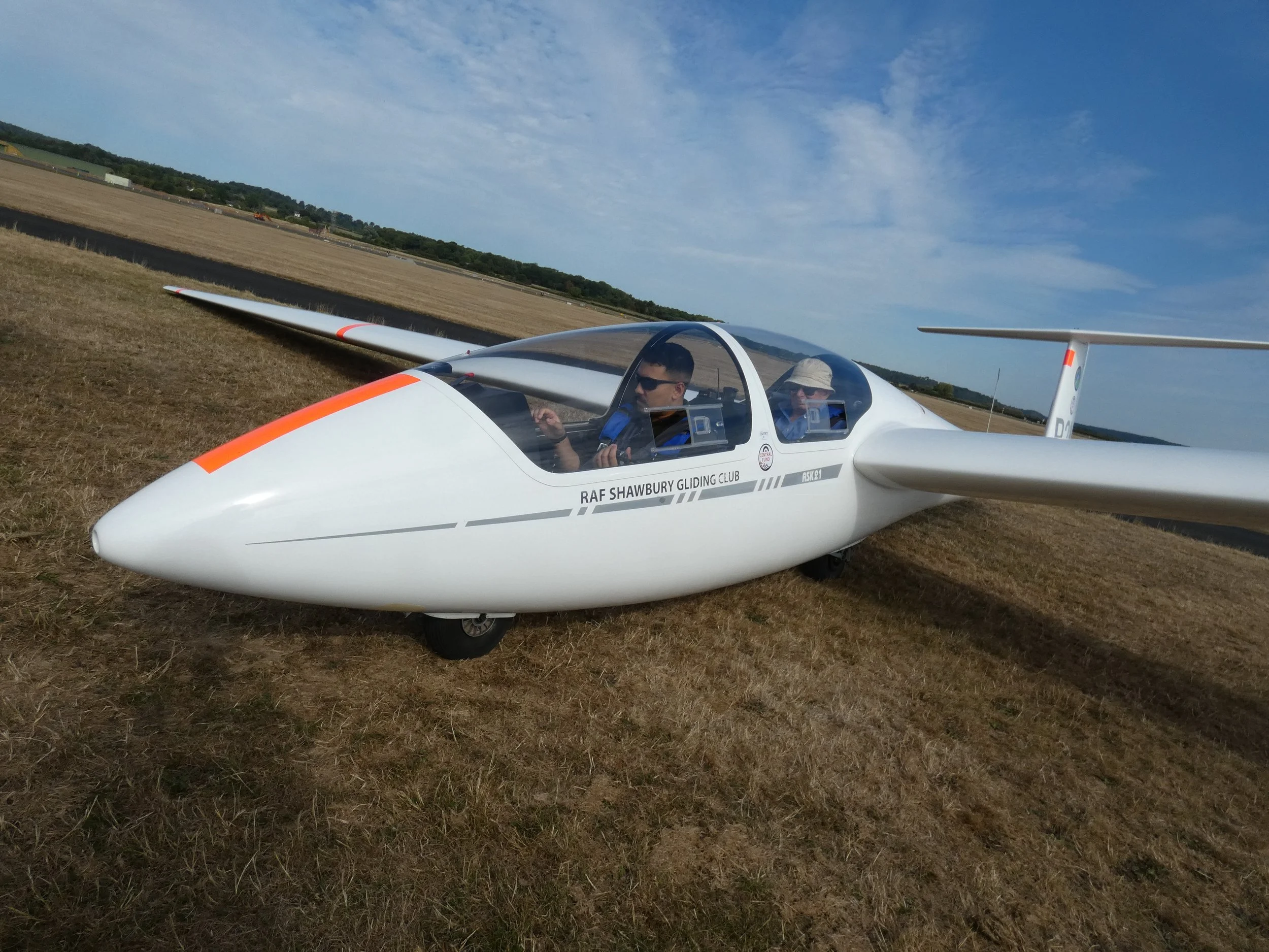 First away to enjoy the conditions were Alan and Norm in R22. Alan, a Bannerdown RAFGSA member, hadn’t flown for a couple of years so after knocking off the rust and a couple of practice launch failures Alan re-solo’d. Top Job. From then on, with booming thermals, it was harder to come down than to stay up. Whilst the 21s were fully employed, Toby continued to build up his TMG hours with a couple of trips in KE and taking Hoss and Lucas as ballast!