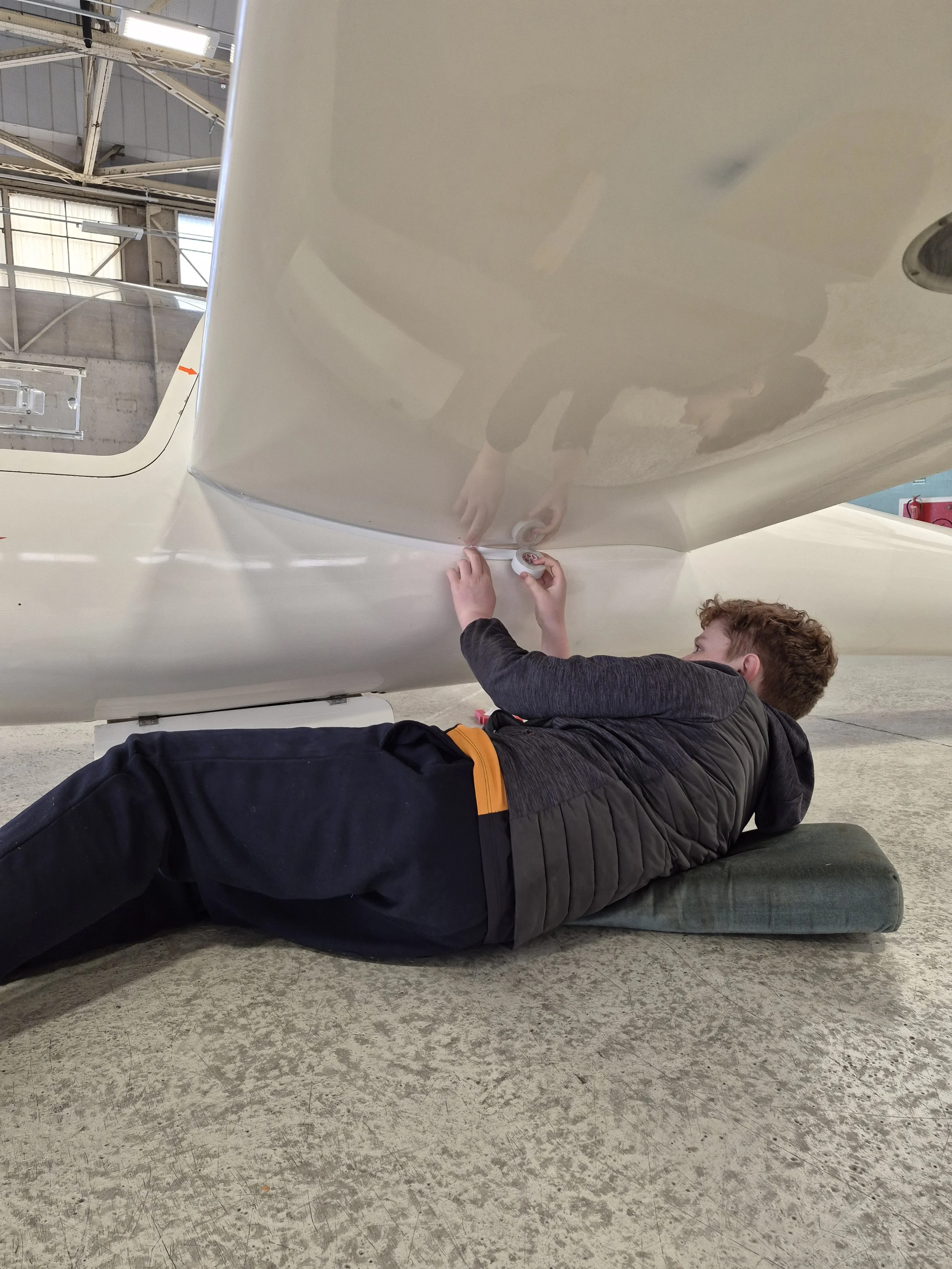 Colin’s apprentice, Ben - who continues to work towards his volunteering section of his Duke of Edinburgh with us - was tasked with re-taping R66’s wings, and what a Stirling job he made of it...