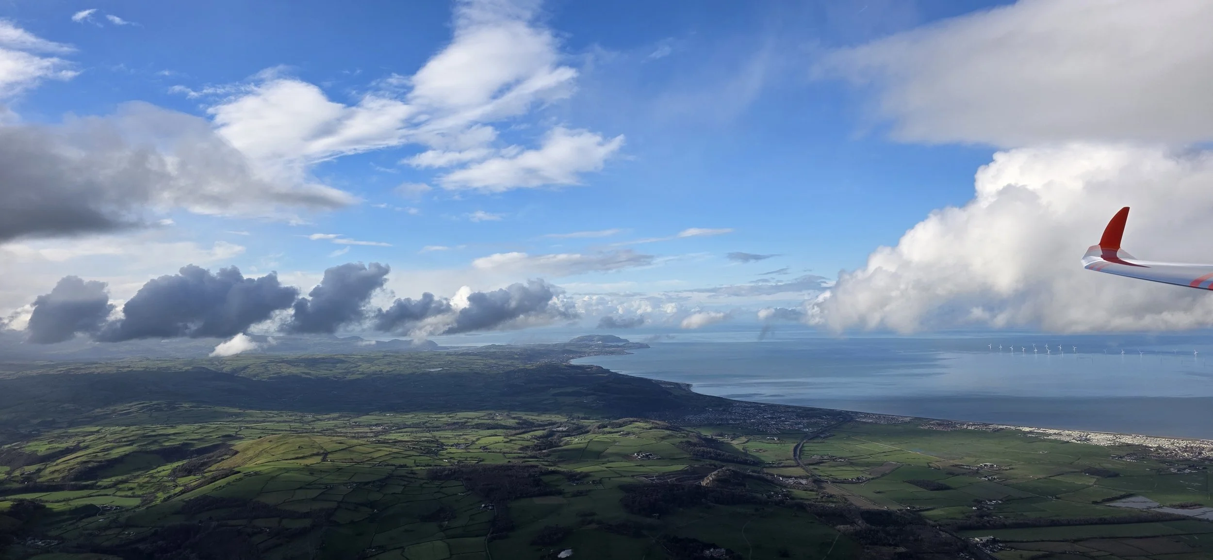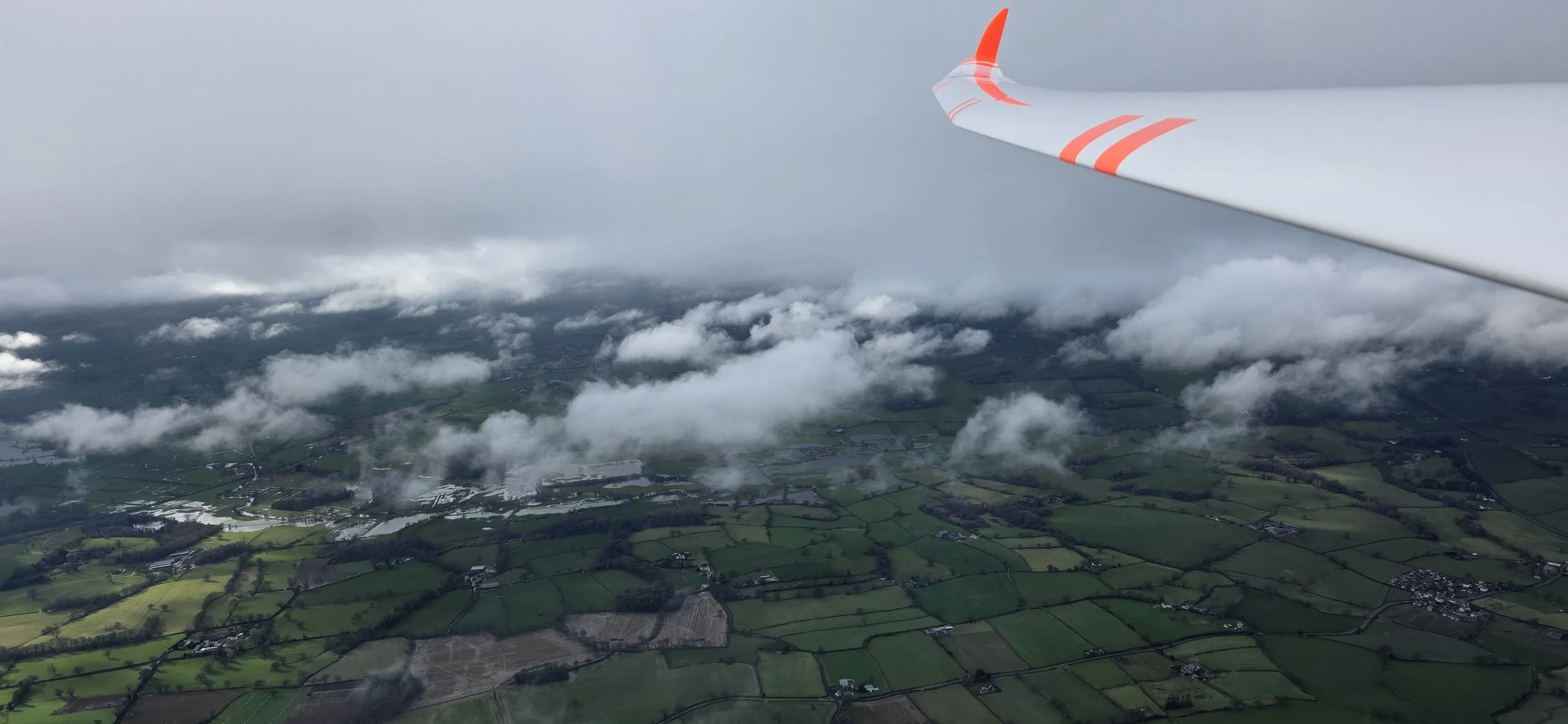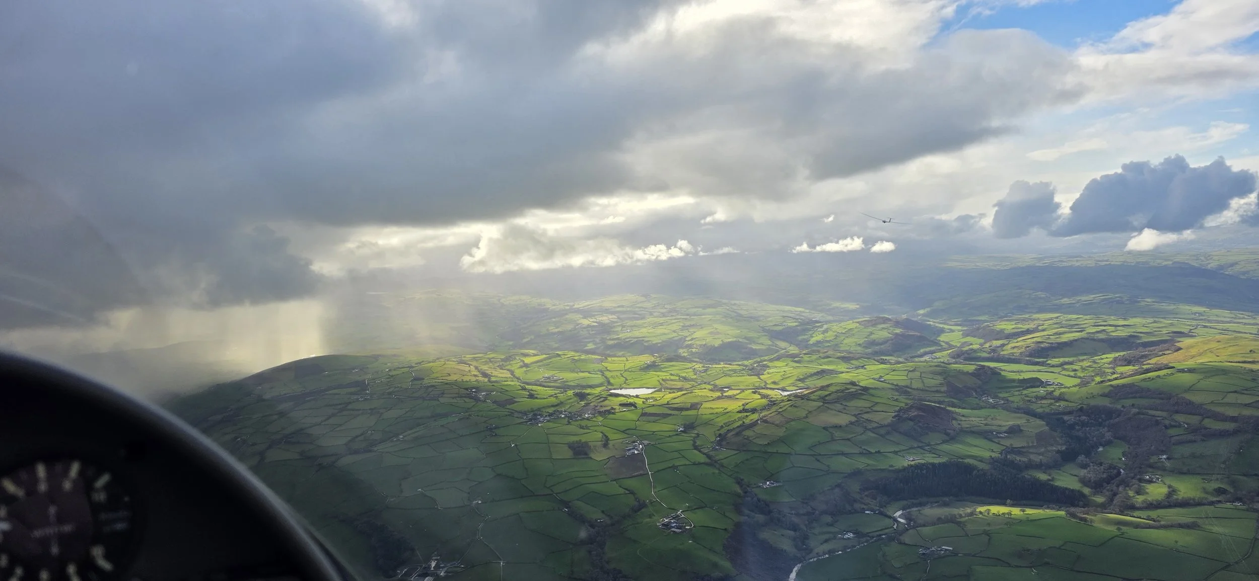 Meanwhile, Gally and his final passenger were fortunate enough to encounter some light wave with a fellow Navy Gliding Club Duo, 620, over Bodelwyddan (no, I couldn’t remember how to spell that & no, I can’t pronounce it). It was at this point, the met decided yet again to come over all Welsh, and with the low-pressure system closing in, a last dash for Denbigh was made.