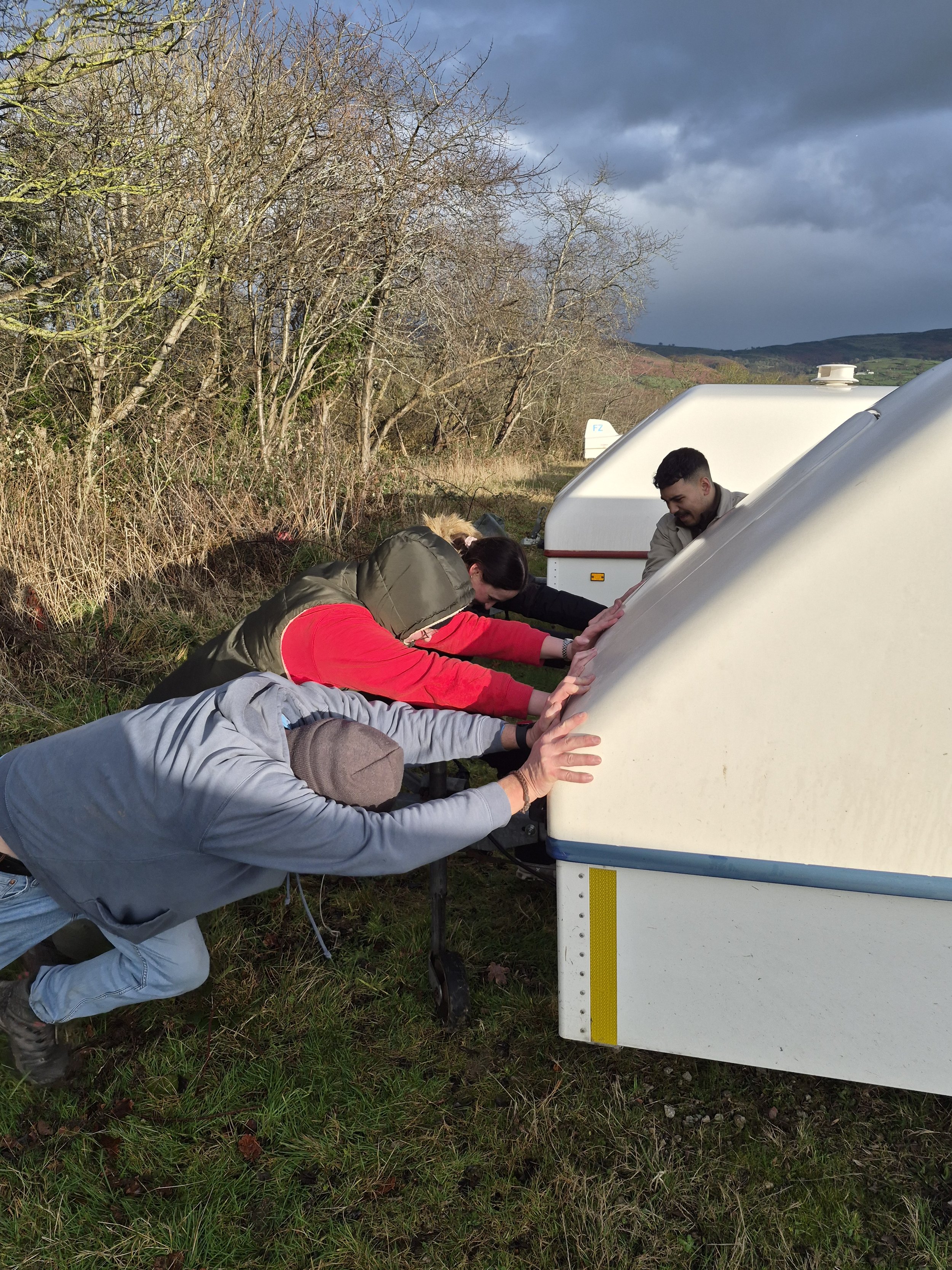 With the day slowly winding to a close, R2 was derigged soon derigged; with Brad on photography/moral support duty, the remaining four heaved the trailer up the slope, with only one slip up – quite literally for Lizzie - and R2 was on its way back to Shawbury.