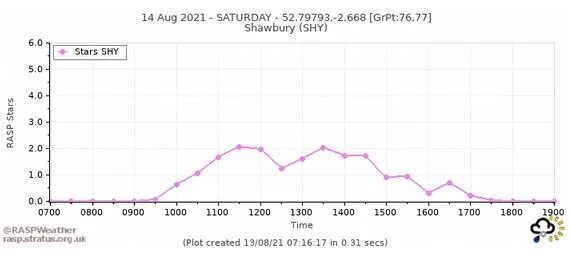 The Star Rating provides an indication of the quality of the soaring on the day. Anything over 0 is thermally active, and 3 Stars and above suggests good conditions for local soaring.