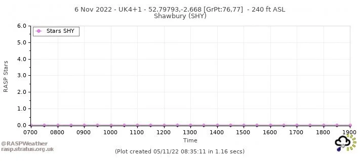 The Star Rating provides an indication of the quality of the soaring on the day. Anything over 0 is thermally active, and 3 Stars and above suggests good conditions for local soaring.