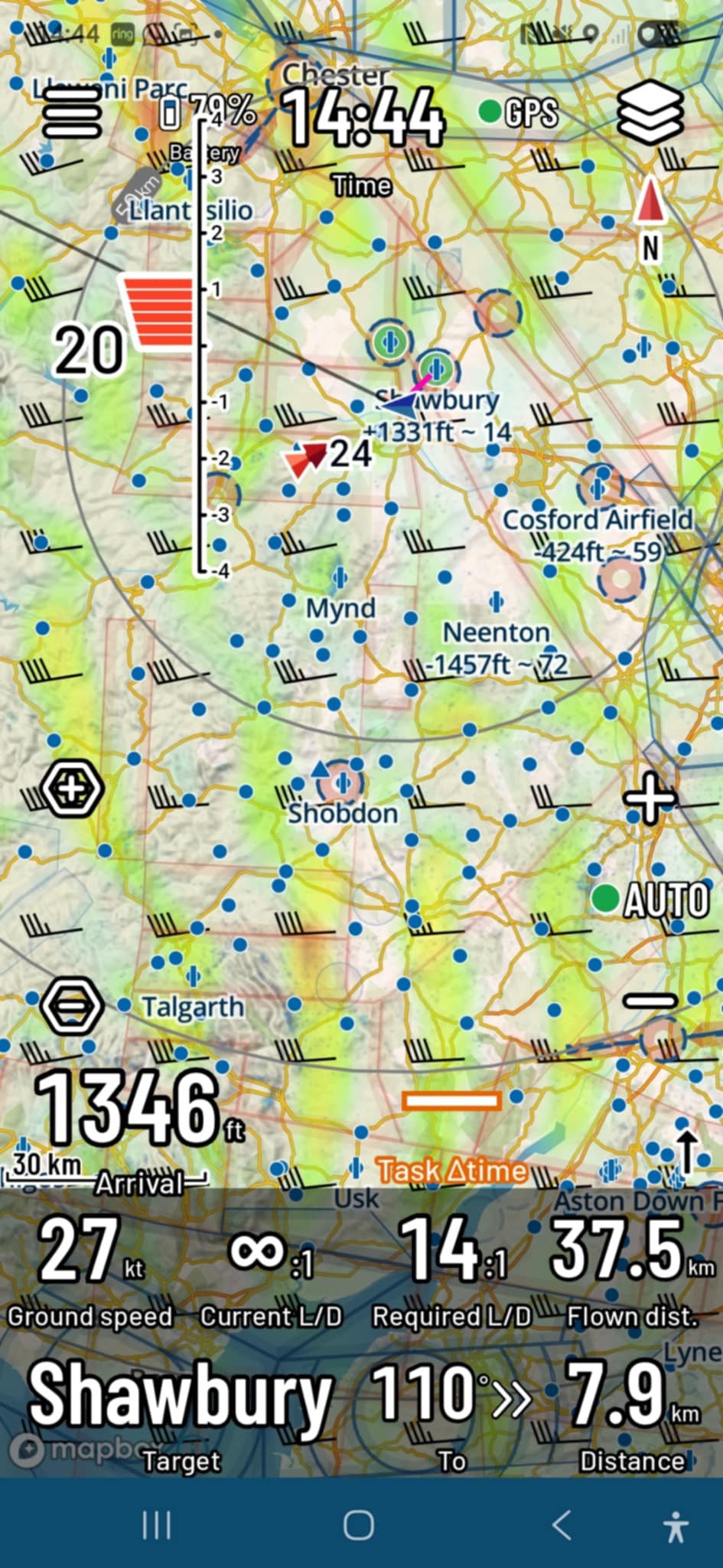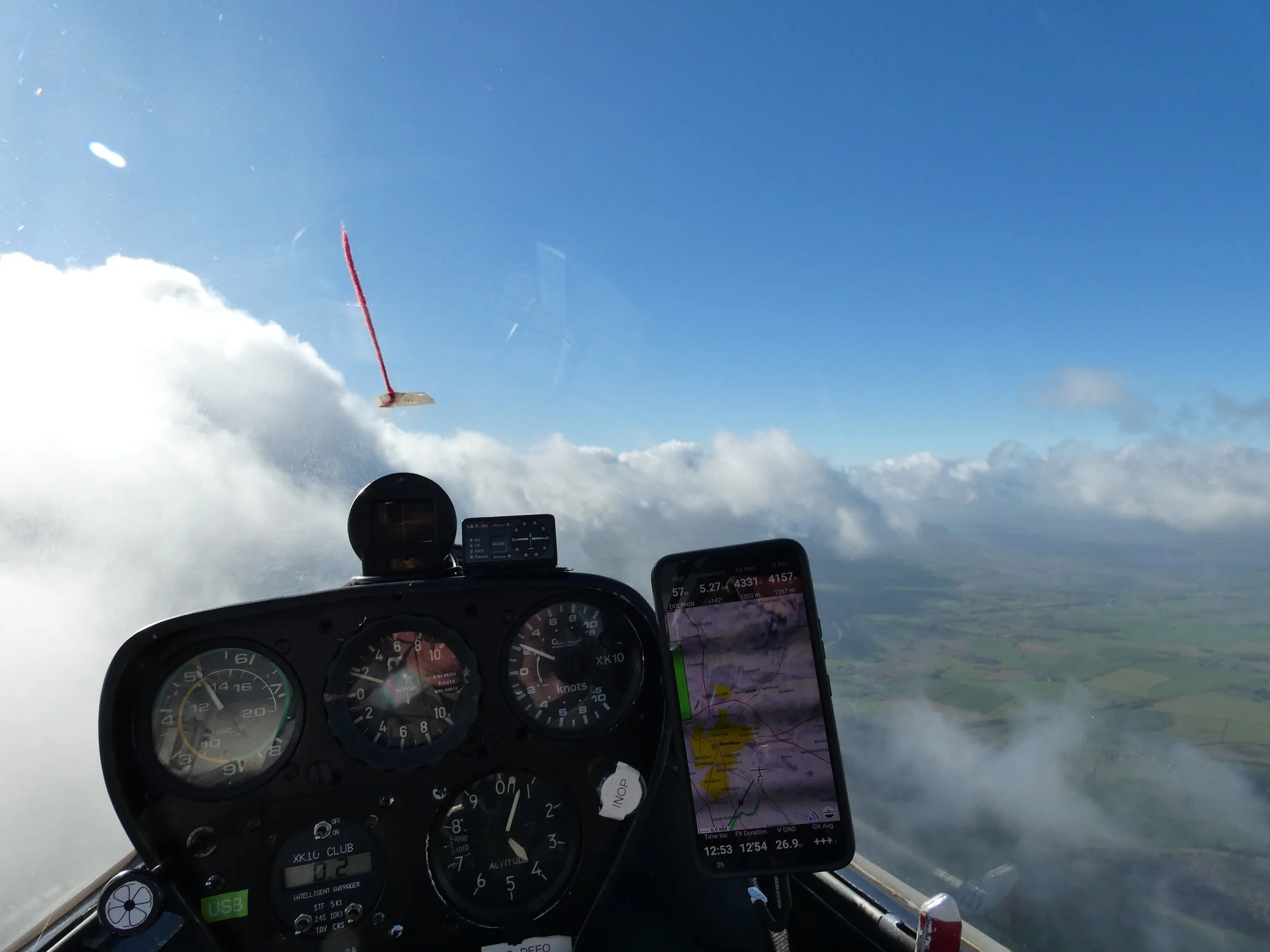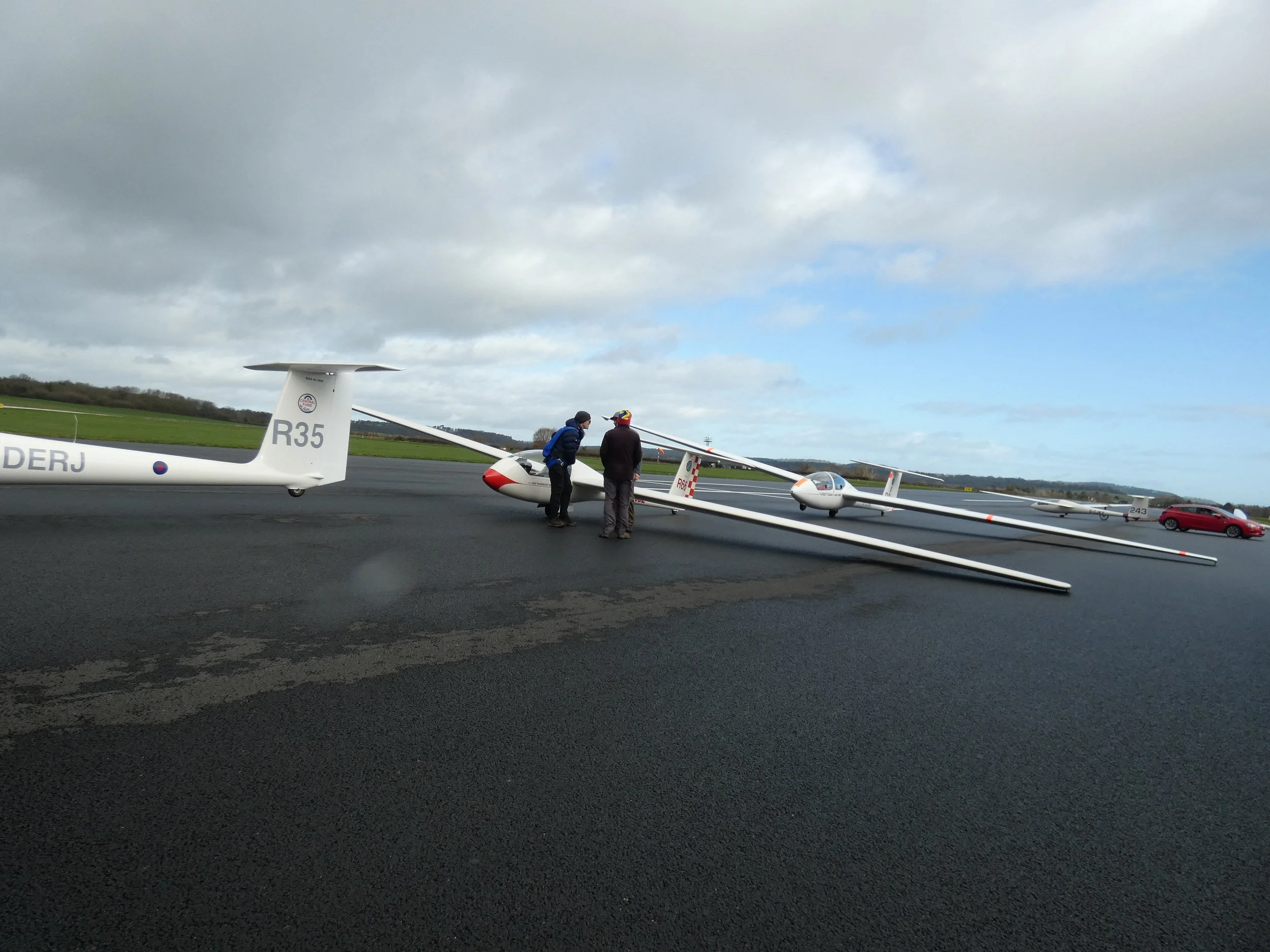 Our new met professor, Will, was next up in R66... a nice change of scenery for him compared to repairing its trailer’s interior. Sadly, the cloud was too low for him to connect with the wave. Sounds like another weather app is in need of downloading! An hour later, the Colonel braved the increasing winds as he creaked and squeaked into EEO, taking advantage of the breaking cloud cover, punching through to 4000ft. Having contacted the wave, he enjoyed a 50-minute saunter over Shrewsbury before returning to Earth, with a sporting approach.