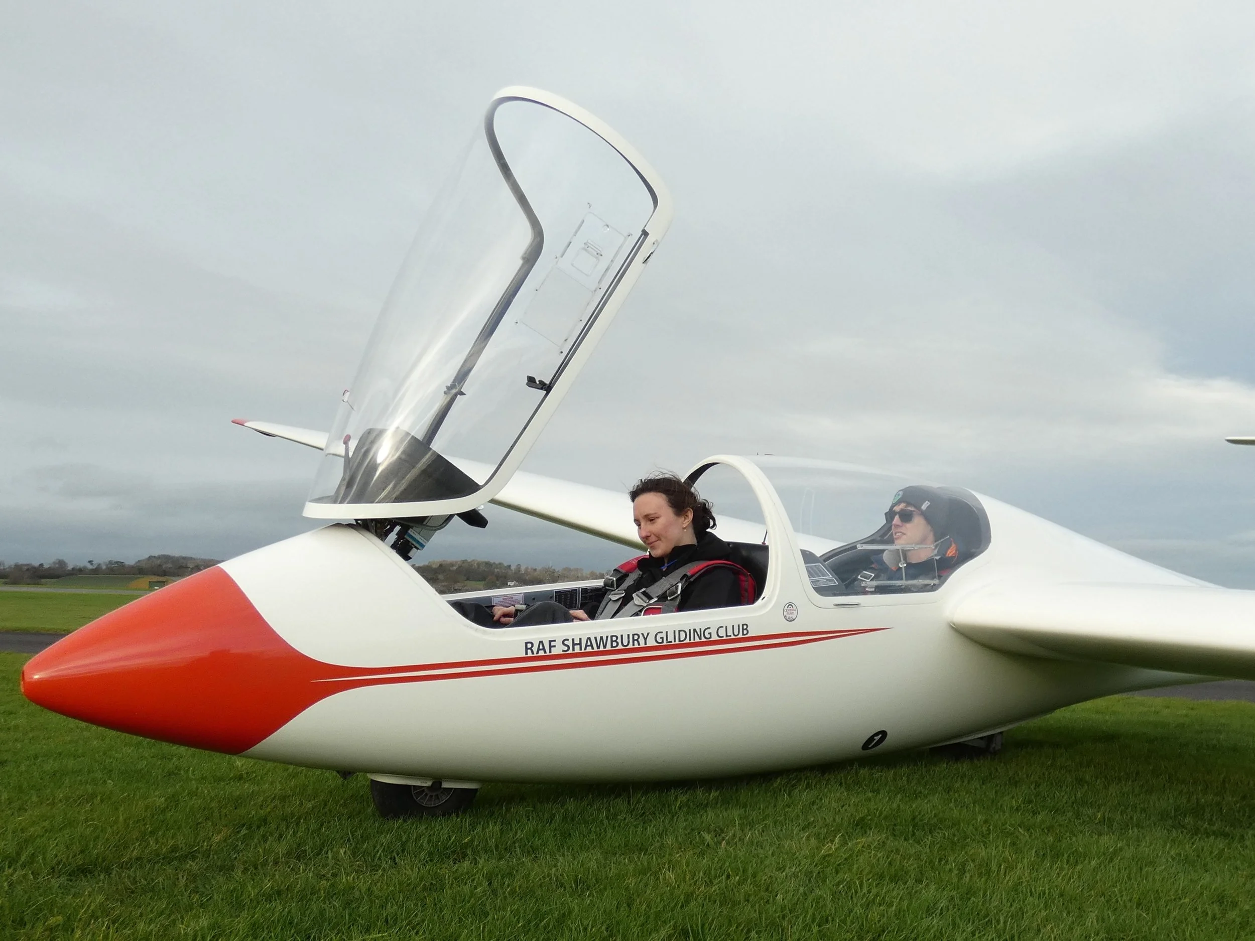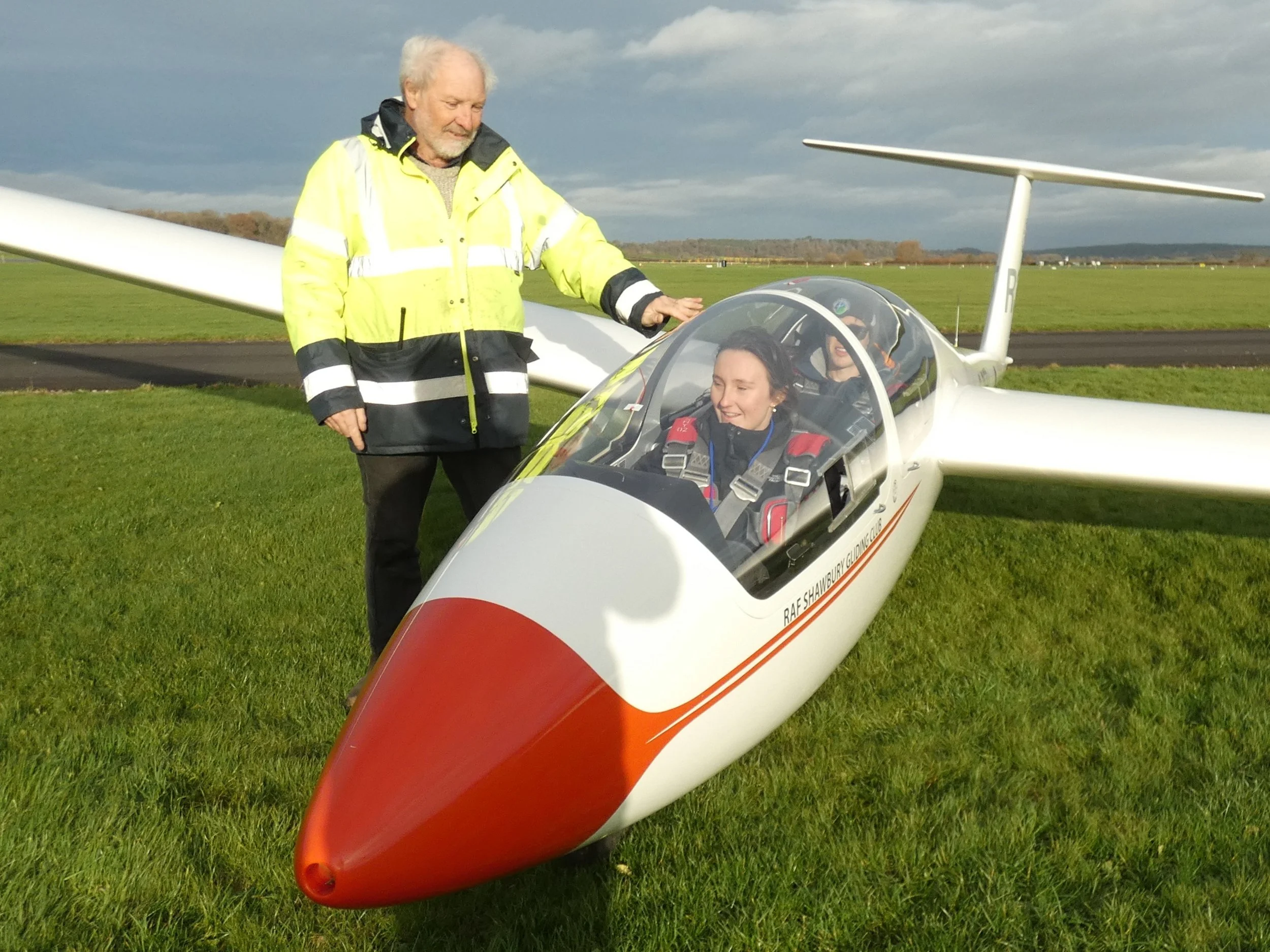 With just sufficient members we took out R35 and a single seater and set up to fly off r’way 18 (grass). After the normal proof of concept launches, first away was our latest MEF gliding bursary student Emelia.