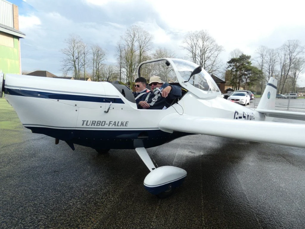 For those who arrived today amidst yet another heavy downpour, it looked like another flying day was to be scrubbed. And so we had to be inventive for our new younger pilots who turned up in the hope of flying. Parachute and cockpit briefs in a dry Hangar 4 were followed by time on the simulator for Billy, Ethane and Oliver conducted by our aerobatics aviatrix, Laura……